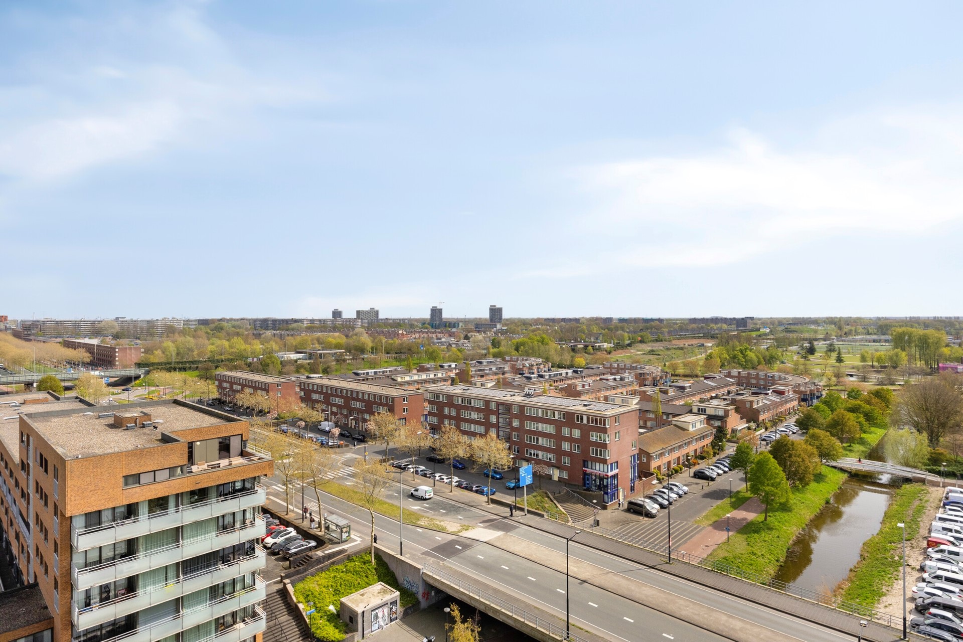 Dit fijne appartement, gelegen op de Raoul Wallenbergstraat 173, onderscheidt zich direct door het panoramische uitzicht aan drie zijden (oosten, zuiden en westen). Of je nu in de ochtendzon wilt ontwaken met een kop koffie, ’s middags wilt genieten van de zon of 's avonds wilt genieten van kleurrijke luchten, hier ben je altijd verzekerd van een fascinerend vergezicht. U kijkt uit over het Nelson Mandelapark, ziet de verkeerstoren van Schiphol en bij helder weer is zelfs de Domtoren te zien. Met ramen rondom valt het licht altijd binnen, waardoor het geheel altijd fris en uitnodigend aanvoelt.