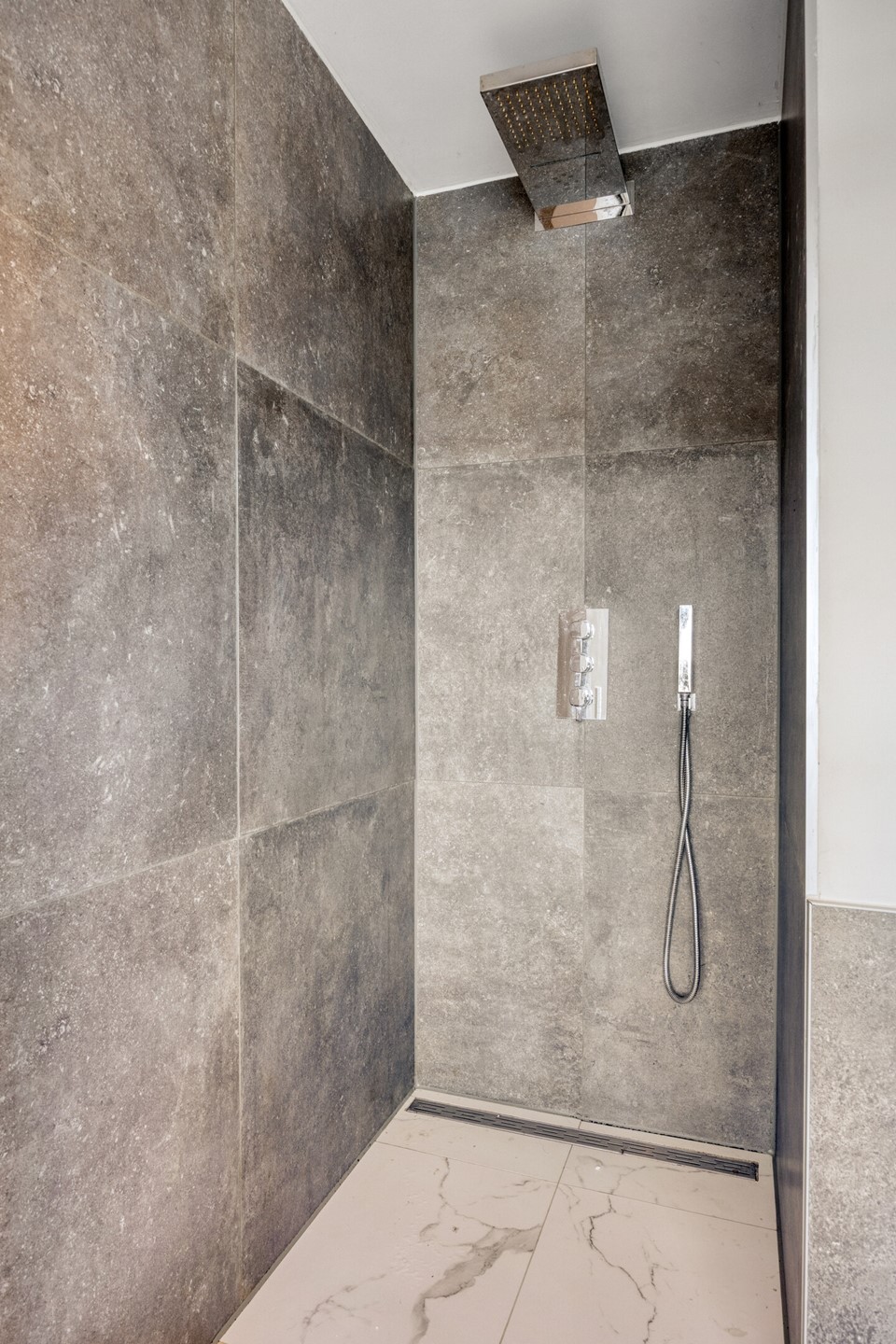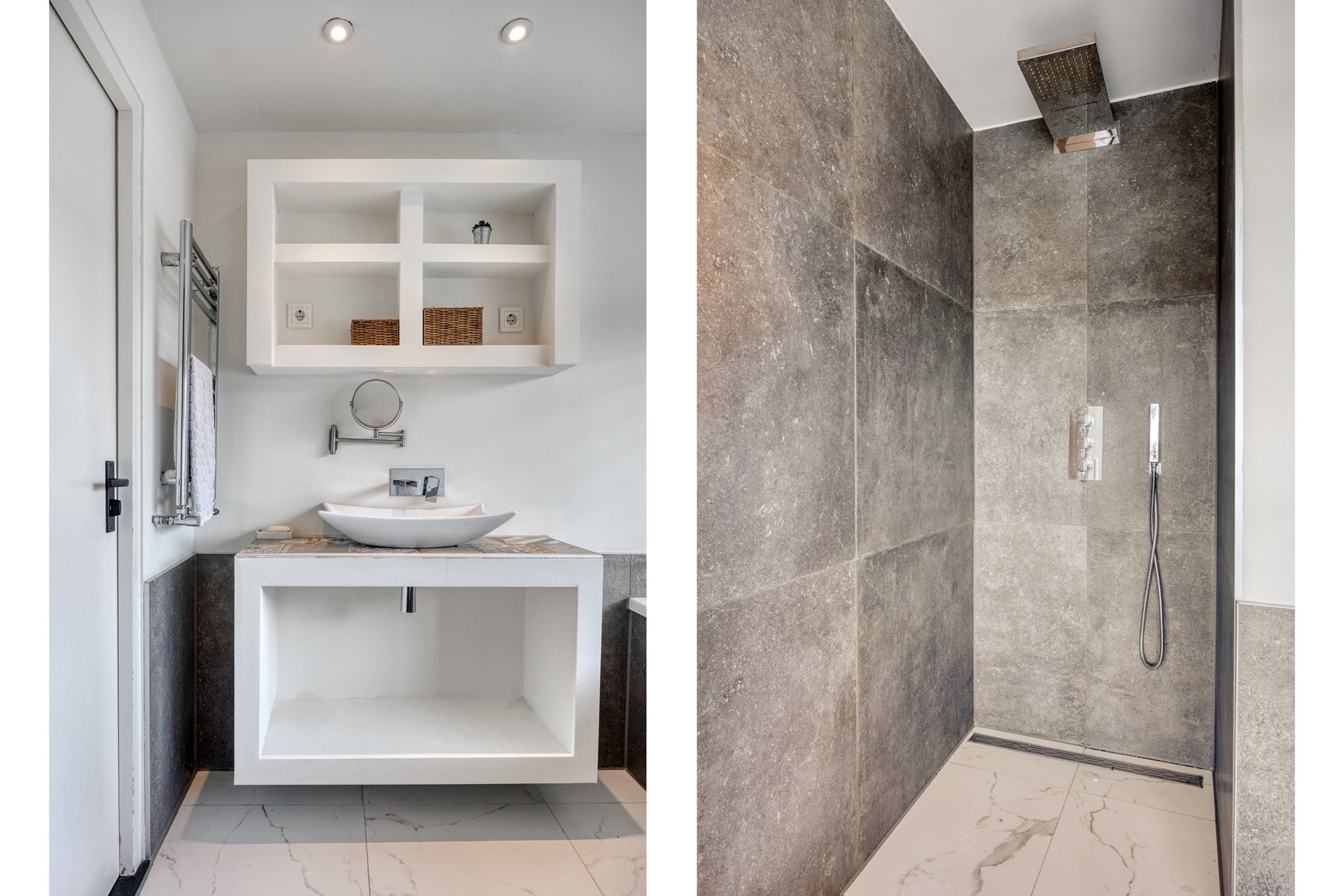 -Moderne badkamer met inloopdouche, ligbad en vloerverwarming
